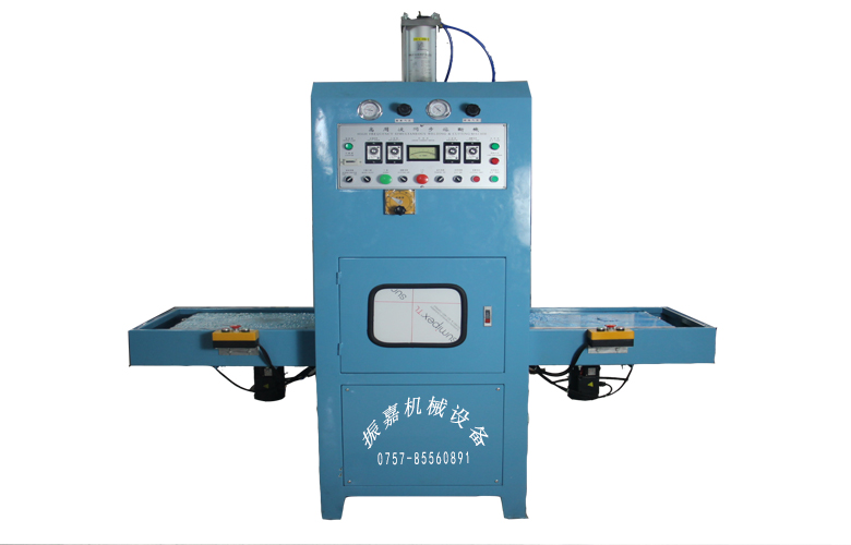 主要用于需要高周波熔接同時又必須同步裁斷的產品加工,高周波機的工作原理是利用高周波先熔接再通過機器配有的壓力裝置同時切斷。因為是同時完成,所以稱為高周波同步熔斷機。也稱為高周波熔斷機、熔斷機、高周波同步裁斷機、高周波裁斷機。主要適用于APET、PETG、GAG環保材質的雙面吸塑泡殼的封口包裝、吸塑紙卡包裝、牙刷包裝、手機皮套/平板電腦皮套一次成型、皮墊壓邊裁斷成型,以及EVA布類皮革、真皮、OPP、PU、表帶、吊帶、熱水袋、保暖袋等需要熔接又要同步熔斷的產品。